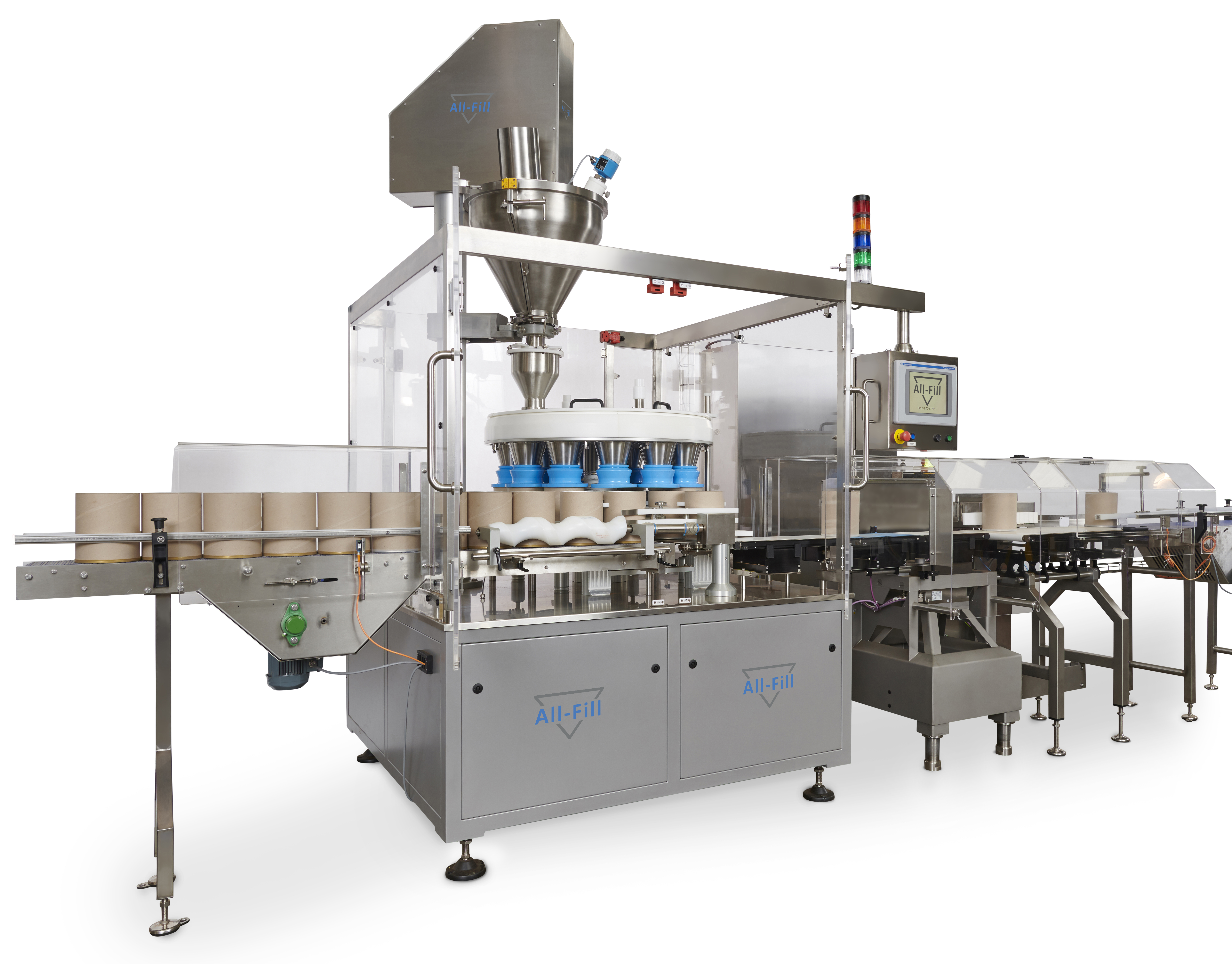 All-Fill’s continuous motion rotary fillers offer high-speed, high accuracy filling for a wide variety of powders and granules.